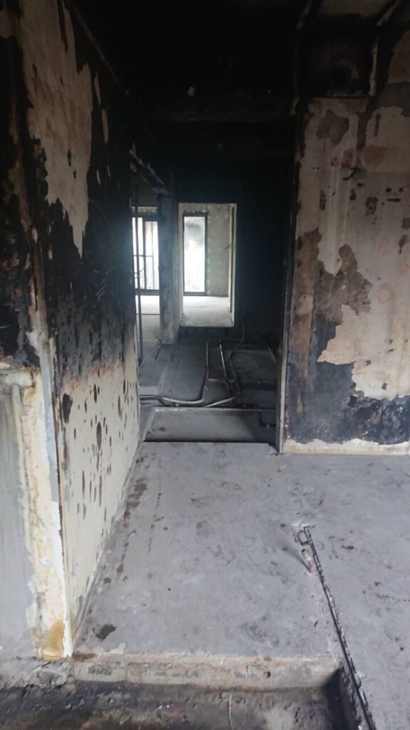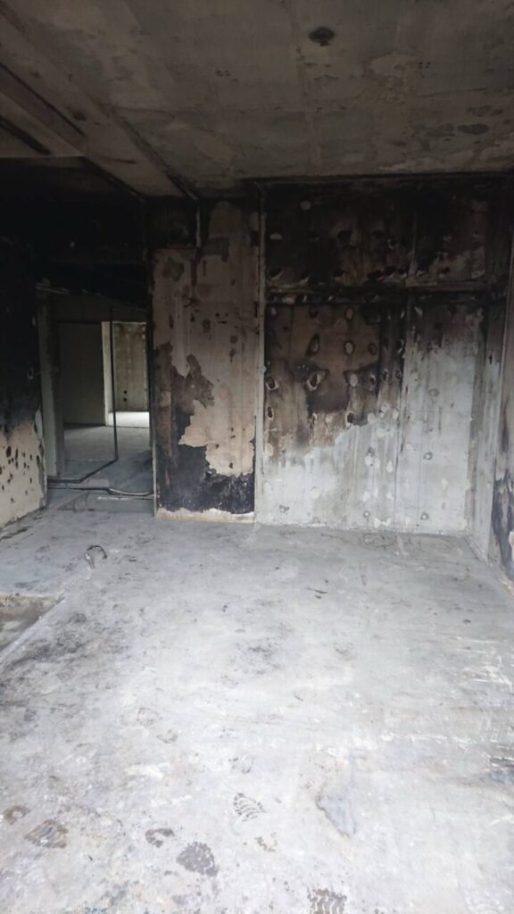 火災のあった部屋でした。お施主様が周りへの迷惑を考え1日でも早く作業して欲しいとの依頼でした。ただ産廃業者に持って行くとものすごい高額になる為お施主様と一緒に役所へ相談に行き、少しでも安価で出来るようにしました。1番はお施主様への心の配慮にも気をつけて作業させていただきました。なによりお施主様が無事でなによりでした。火の元には気をつけましょう。